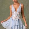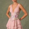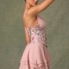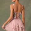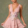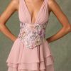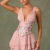 Embellished Ruffled Corset Mini Dress in Floral Pink