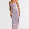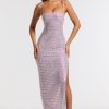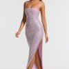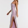 Embellished Square Neck Evening Gown in Lilac