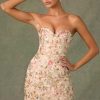 Every detail matters. Expertly crafted from figure-defining mesh fabric, overlaid with custom watercolour-inspired floral appliqués and the perfect topping of sparkling sequins, the Dahlia mini dress is cut to a classic A-line silhouette with a fitted bodice and darted skirt. It’s framed with a bandeau sweetheart neckline, held in place with internal silicone grip tape, and comes with adjustable detachable straps for custom styling.