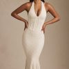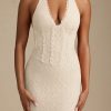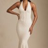 Halterneck Corset Lace Midaxi Dress in Ivory