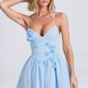 Got plans? Wear this. Designed with evening plans in mind, the Carlotta mini dress is crafted from lustrous lightweight satin with a subtle touch of stretch for a figure-skimming fit with an A-line skirt. It features a plunging neckline with pleated detailing, twisted crossover straps and an open back with functional lace-up detailing.