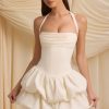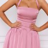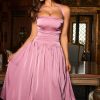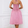 Halterneck Lace-Up Ruched Corset Midi Dress in Mauve