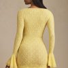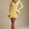 Unlock the secret of daytime elegance with the Nara mini dress. Cut to a figure-enhancing bodycon silhouette with a ruffled skirt and cuffs, it’s crafted from premium floral lace with a touch of stretch for enhanced comfort. It’s framed with a scoop neckline traced with pretty scalloped trims.