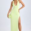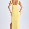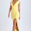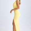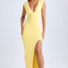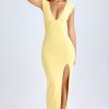 Modal High-Split Plunge-Neck Maxi Dress in Lemon Sherbet