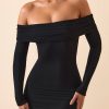Statement staples. A style made for day-to-night plans, the Oriana mini dress is cut to an off-shoulder silhouette with a foldover ruched neckline. It features internal silicone tape for enhanced hold, is framed with fitted long sleeves, and is crafted from our premium, buttery soft and stretchy jersey made with TENCEL™ Modal fibres, derived from controlled or certified wood sources.