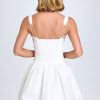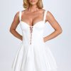 Meet Analise: the perfect day-to-night dress with a signature romantic twist. Crafted from lightweight stretch-cotton poplin to a breezy A-line silhouette, it features a fitted bodice elevated with moulded underwired cups for enhanced support, delicate pintucked detailing and picot lace trims. It falls to a voluminous, double-layered mini-length skirt and is complete with adjustable rouleau tie straps for your perfect fit.