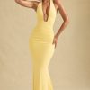 Make every entrance count with the Laverna gown. Designed to hug every curve perfectly, it’s crafted from our premium matte jersey fabric with a touch of stretch for enhanced comfort. Framed with a plunging U-shaped wired neckline and an adjustable halterneck strap, it’s elevated with perfectly placed ruching at the sides and back, and falls to a fishtail hem with a stunning puddle train.