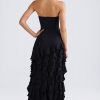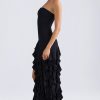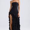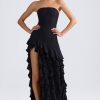 Lovingly crafted with extra-special occasions in mind, the Diletta gown is uplifted with layers of cascading ruffles that create a dynamic look with every step. It’s crafted from lightweight stretch georgette to a figure-skimming column silhouette punctuated with a thigh-high split at the side. The bandeau neckline is anchored with internal silicon taping for a secure fit.