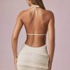 Ruffled Backless Halterneck Mini Dress in Ivory