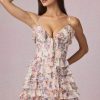 Love at first wear. The definition of romantic dressing, the Lolina mini dress is light, floaty and full of movement. Crafted from airy chiffon to an A-line silhouette that flares gently from the waist, it’s brought to life with a plunging neckline and pretty ruffle trims. It features a signature lace-up back and adjustable straps for a fully customisable fit and enhanced support.