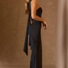 Scarf-Detail Strapless Gown in Black