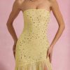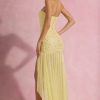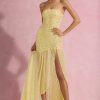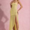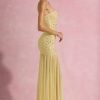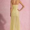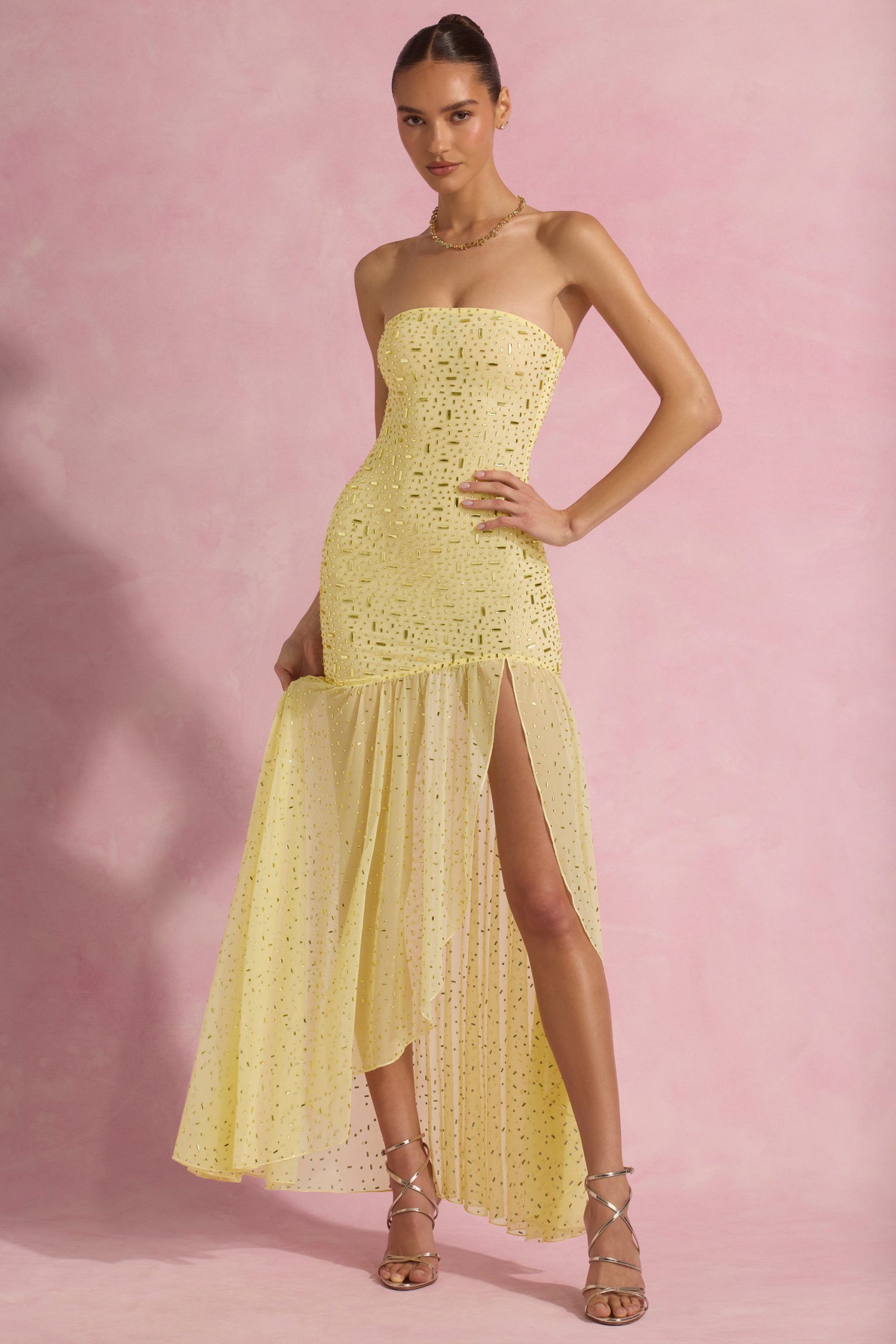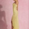 Semi-Sheer Embellished Asymmetric Maxi Dress in Yellow