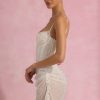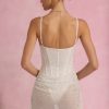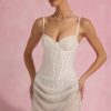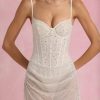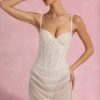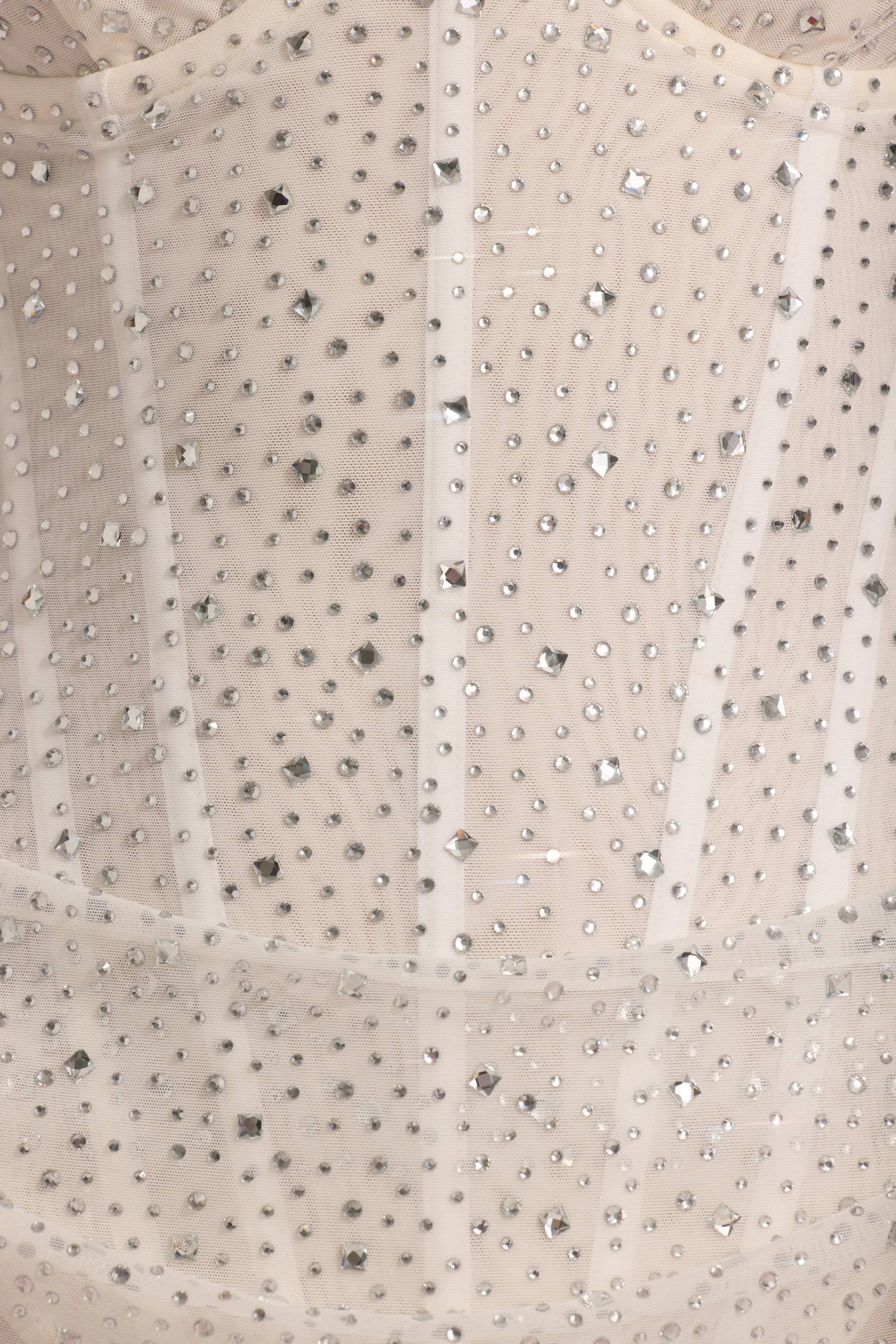 Semi-Sheer Embellished Draped Corset Mini Dress in White