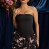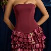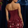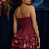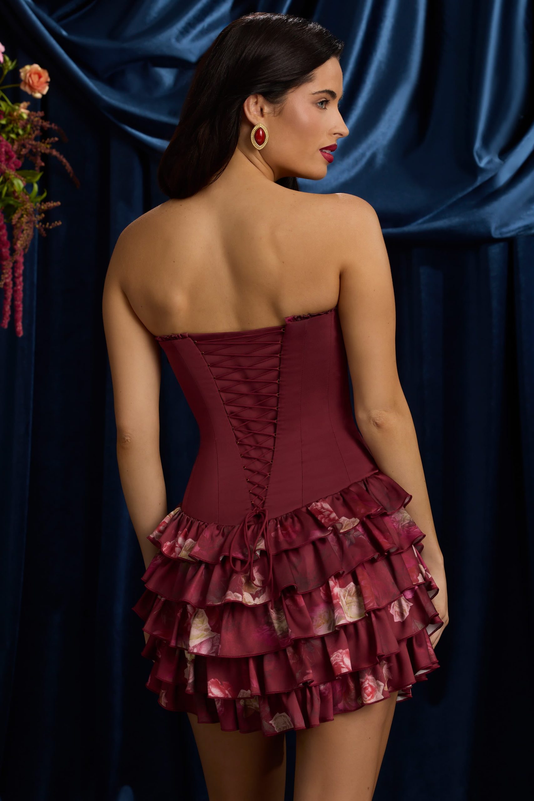 Strapless Ruffled Tiered Corset Mini Dress in Maroon Floral Print