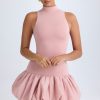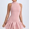 Captivating silhouettes. Perfectly tailored for a seamless fit, the Nabila mini dress features a drop-waist bodice crafted from figure-hugging stretch jersey made with TENCEL™ Modal fibres and a bubble-hem skirt made from cotton voile that creates a voluminous look. It’s framed with a classic turtleneck and primed for styling with point-toe heels for dinner plans.