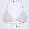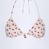 The cherry on top. A fresh take on everyone’s favourite shape, the Calella bikini top is crafted from our premium stretch swim jersey to a classic triangle silhouette with a ruched underbust for custom coverage. It features halterneck and back straps that can be adjusted for your perfect fit and is strung with a glossy cherry charm, in keeping with the playful aesthetic.