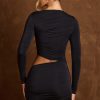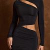 Dynamic dressing. Designed to spotlight your curves, the Arlys mini dress is crafted from premium semi-sheer jersey with a touch of stretch to a classic bodycon silhouette. It’s enhanced with perfectly placed ruched detailing for changeable styling and is punctuated with statement asymmetric cut-outs at the waist and neckline.