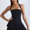 Crafted to precision. Designed to define and flatter your natural curves, the Rosaria mini dress is crafted from lightweight stretch-woven fabric to a classic halterneck silhouette with a figure-hugging drop-waist bodice. It’s complete with a layered pleated skirt for stunning movement with every step.