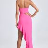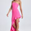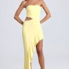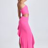 Signature silhouettes with a whimsical twist. Designed for head-turning entrances, the Acelynn maxi dress is crafted from lightweight georgette that skims your curves to an asymmetric silhouette with a built-in corset. It’s traced with a cascading ruffle trim to one side and punctuated with a striking waist cut-out at the other. The bandeau neckline is secured with internal silicone taping for enhanced hold.