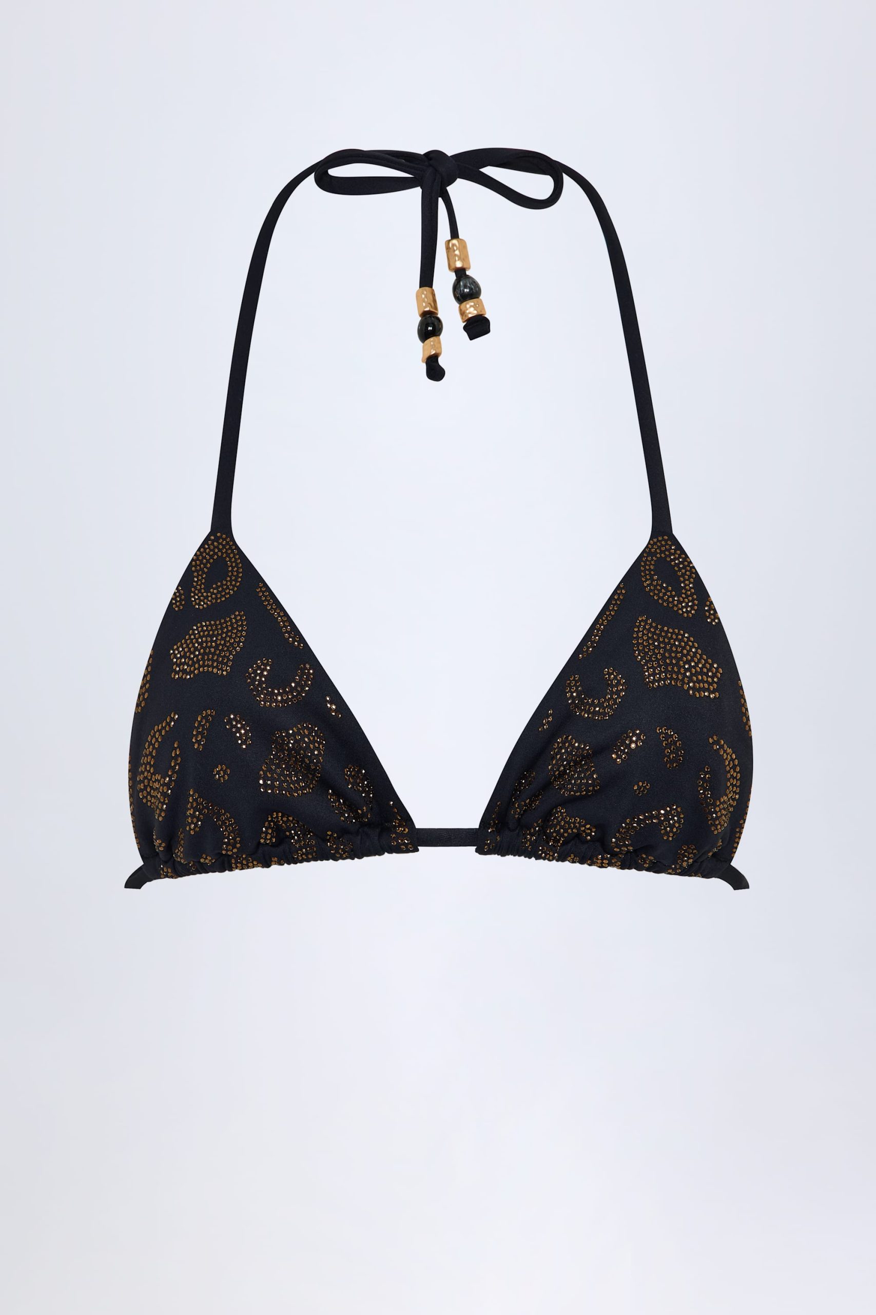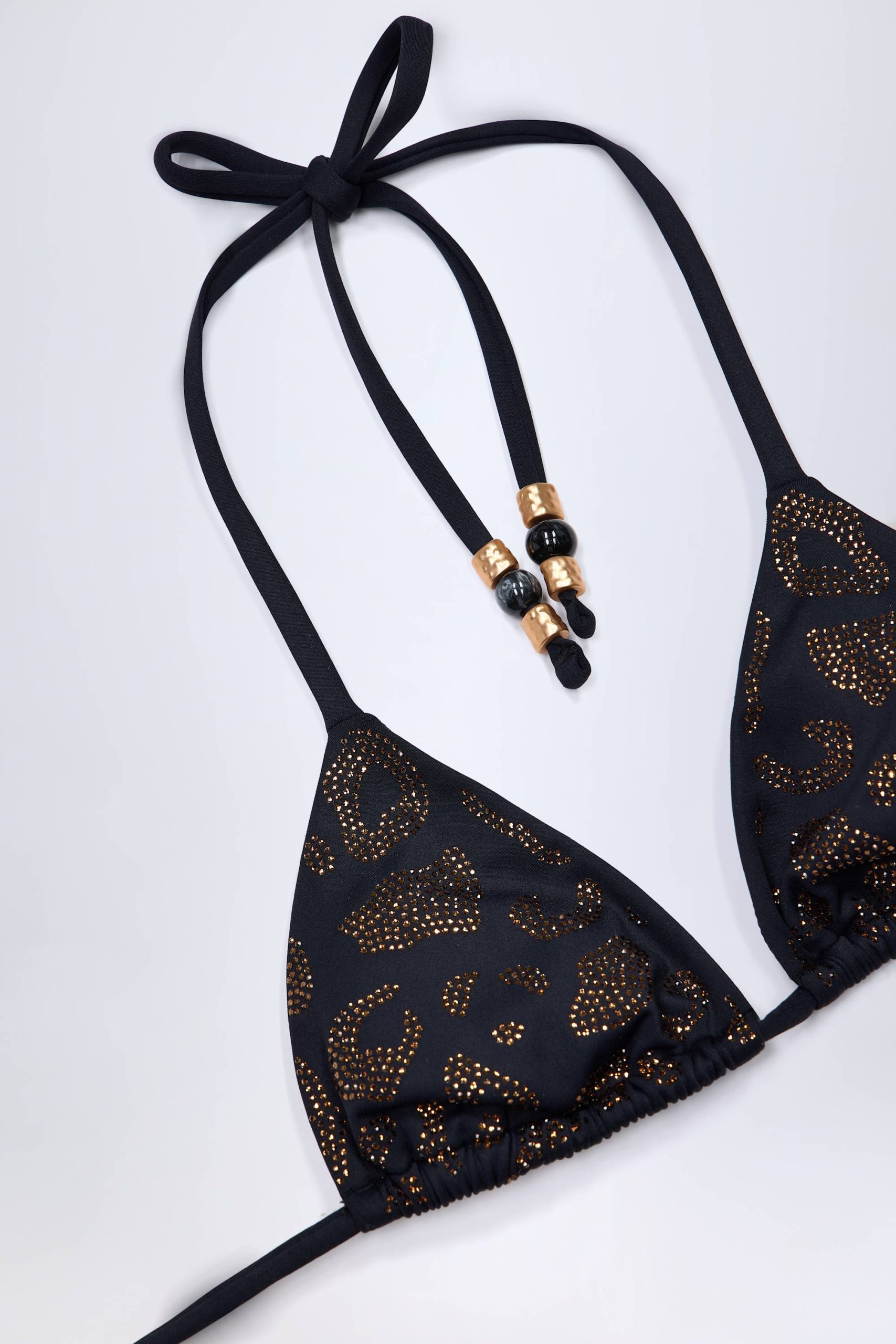 A statement take on the classics, the Cavas bikini top is elevated with rhinestone HOTFIX embellishments that sparkle in the sunlight. It’s crafted from our stretch-swim jersey fabric to a universally flattering triangle silhouette and features adjustable bead-embellished straps for your perfect fit.