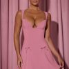 Bow-Detail A-Line Mini Dress in Dusty Pink