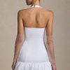 A forever favourite, the Millie mini dress is crafted from premium recycled satin to a figure-hugging silhouette with a signature bubble-hem skirt that holds its shape. The plunging neckline is secured in place with internal wiring and a delicate tonal bow embellishment. It’s elevated with shaping seams and an adjustable halterneck strap for your perfect fit.