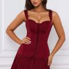 Whimsical silhouettes for special occasions. Crafted from premium lightweight satin, the Evangeline dress features a sculpted corset bodice enhanced with lace-up detailing and pretty pointelle trims. It’s cut to a mini silhouette with a ruffled georgette skirt and features tapered shoulder straps, complete with adjustable ties that can be styled into bows at the back.