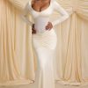 Leave a lasting impression with the Alila maxi dress. Crafted from premium satin jersey that hugs every curve perfectly, it’s cut to a stunning fishtail silhouette, framed with a plunge neckline, contouring ruched detailing and an open back, complete with a row of tonal bow embellishments, in keeping with the collection’s glamorous aesthetic.