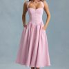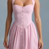 Classic and romantic, the Orlena midaxi dress is cut to a full silhouette with a corset-inspired drop-waist bodice and button detailing along the front. It’s crafted from premium crepe with a lightweight feel and a touch of stretch. The sweetheart neckline is framed with halterneck straps that can be adjusted for your perfect fit.