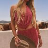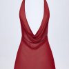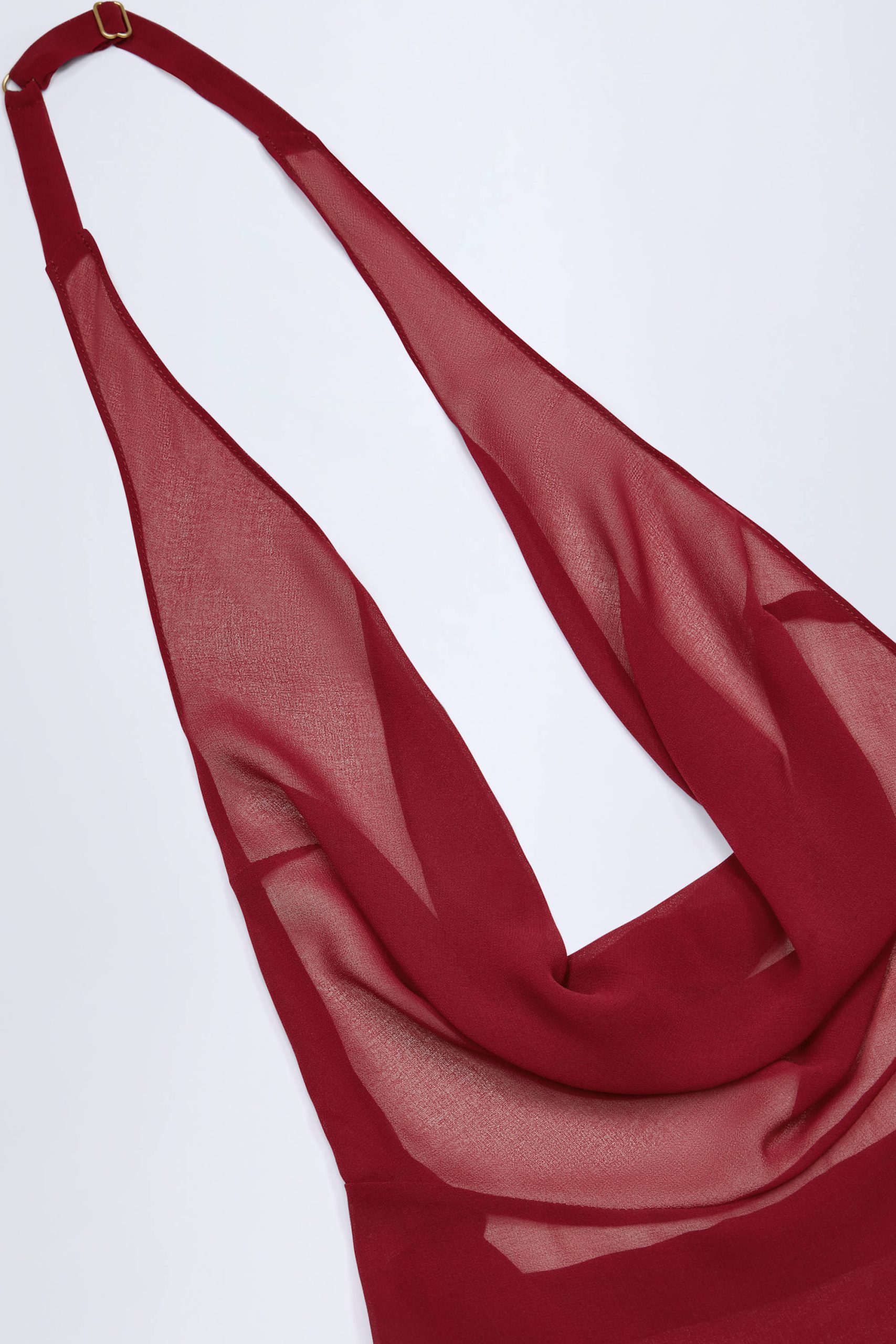 Cowl-Neck Backless Mini Dress in Dark Cherry