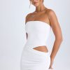 The Damia mini dress is a style you’ll reach for time and time again. Rendered in two summery hues, it’s crafted from our premium textured jersey with ample stretch and cut to a figure-enhancing bodycon silhouette. It’s punctuated with a statement side cut-out, complete with crossover ruching, and the bandeau neckline is secured with internal silicone tape for enhanced hold.