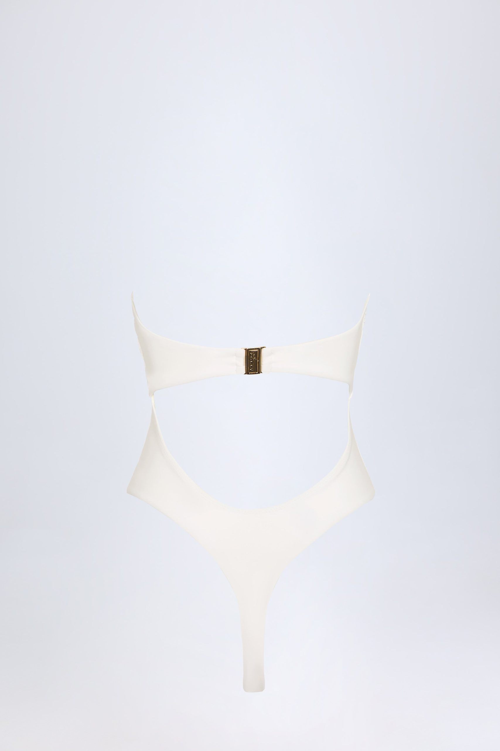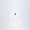Inspired by tropical landscapes, the Bahari swimsuit is detailed with custom flower-shaped hardware at the centre. Crafted from our premium stretch-jersey swim fabric that fits like a second skin, it’s cut to a figure-flattering high-leg silhouette with a statement cut-out and cheeky back coverage. The halterneck straps are fully adjustable for a custom fit every time.