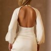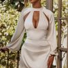 Classic elegance, reimagined. Designed to skim your curves for a universally flattering fit, the Reia dress is cut to an A-line silhouette with balloon sleeves and a draped mini skirt. It’s crafted from premium lightweight satin with a touch of stretch and features statement cut-out detailing at the front, making it the perfect option for evening events.