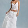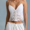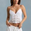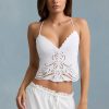 Taking inspiration from intricate Mediterranean artwork, the Vasilia camisole top is elevated with laser-cut detailing and scalloped edges. It’s crafted from lightweight cotton poplin, ideal for warm-weather styling, and features a statement open back with adjustable ties.