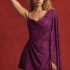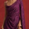 Devoré One-Sleeve A-Line Mini Dress in Berry Purple