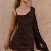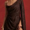 Devoré One-Sleeve A-Line Mini Dress in Dark Chocolate