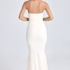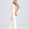 Draped Floral-Appliqué Maxi Dress in Ivory