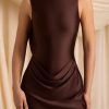 Designed to bring the drama this festive season and beyond, the Monnie mini dress is crafted from high-shine soft jersey to an A-line silhouette with a stunning low cowl back anchored with lustrous, detachable faux-pearl straps. It features a built-in boat-neck bodysuit that hugs your curves and a draped A-line mini skirt that creates the look of elevated separates for a sultry yet statement take on party dressing.