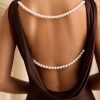 Open cowl back with detachable faux-pearl straps