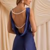 Designed to bring the drama this festive season and beyond, the Monnie mini dress is crafted from high-shine soft jersey to an A-line silhouette with a stunning low cowl back anchored with lustrous, detachable faux-pearl straps. It features a built-in boat-neck bodysuit that hugs your curves and a draped A-line mini skirt that creates the look of elevated separates for a sultry yet statement take on party dressing.