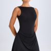 Designed to give the illusion of sleek separates, the Shirin mini dress is crafted from figure-hugging slinky jersey with a built-in bodysuit for enhanced support and coverage. Framed with a high neckline, it’s elevated with a draped skirt that falls slightly longer at the sides and turns to reveal a low scoop back, ideal for making a statement on balmy summer evenings.