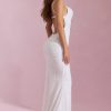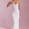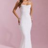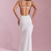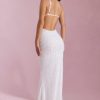 Embellished Cowl-Neck Backless Maxi Dress in White