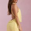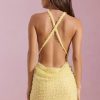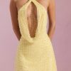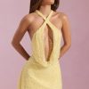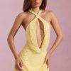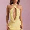 Embellished Cowl-Neck Backless Mini Dress in Yellow