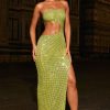 Designed for decadent evenings. A statement style that will hold its place in your occasionwear rotation, the Alamea maxi dress is crafted from premium 20D mesh with a touch of stretch to a column silhouette. It’s framed with a bandeau neckline secured with internal silicone tape for enhanced hold and punctuated with a curved cut-out at the waist. The signature HOTFIX embellishments promise endless sparkle all night long.
