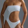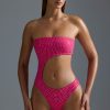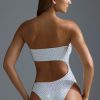 Maximum embellishment, maximum impact. Guaranteed to turn heads poolside, this swimsuit is rendered in three bright hues and adorned with sparkling hotfix rhinestones. It’s crafted from a stretch-jersey swim fabric with a soft-touch feel and spliced with a statement curved cut-out.