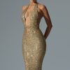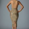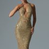 Dare to stand out in the Harlyn dress. A statement silhouette crafted from luxe stretch fabric, it’s cut to a figure-hugging midaxi silhouette with halterneck straps, statement cut-out detailing at the front and a high-impact open back. It’s saturated with scores of sparkling sequins, inspired by the festive spirit of the season.