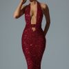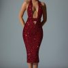 Dare to stand out in the Harlyn dress. A statement silhouette crafted from luxe stretch fabric, it’s cut to a figure-hugging midaxi silhouette with halterneck straps, statement cut-out detailing at the front and a high-impact open back. It’s saturated with scores of sparkling sequins, inspired by the festive spirit of the season.