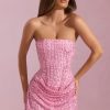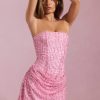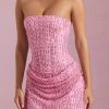 Glow in the Ziya mini dress. A standout style, it’s crafted from our premium, lightweight glittered mesh fabric overlaid with three-dimensional beads for maximum impact at your next event. It’s cut to a universally flattering A-line silhouette with a built-in corset bodice and precise draped detailing.