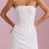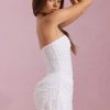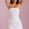 Glow in the Ziya mini dress. A standout style, it’s crafted from our premium, lightweight glittered mesh fabric overlaid with three-dimensional beads for maximum impact at your next event. It’s cut to a universally flattering A-line silhouette with a built-in corset bodice and precise draped detailing.