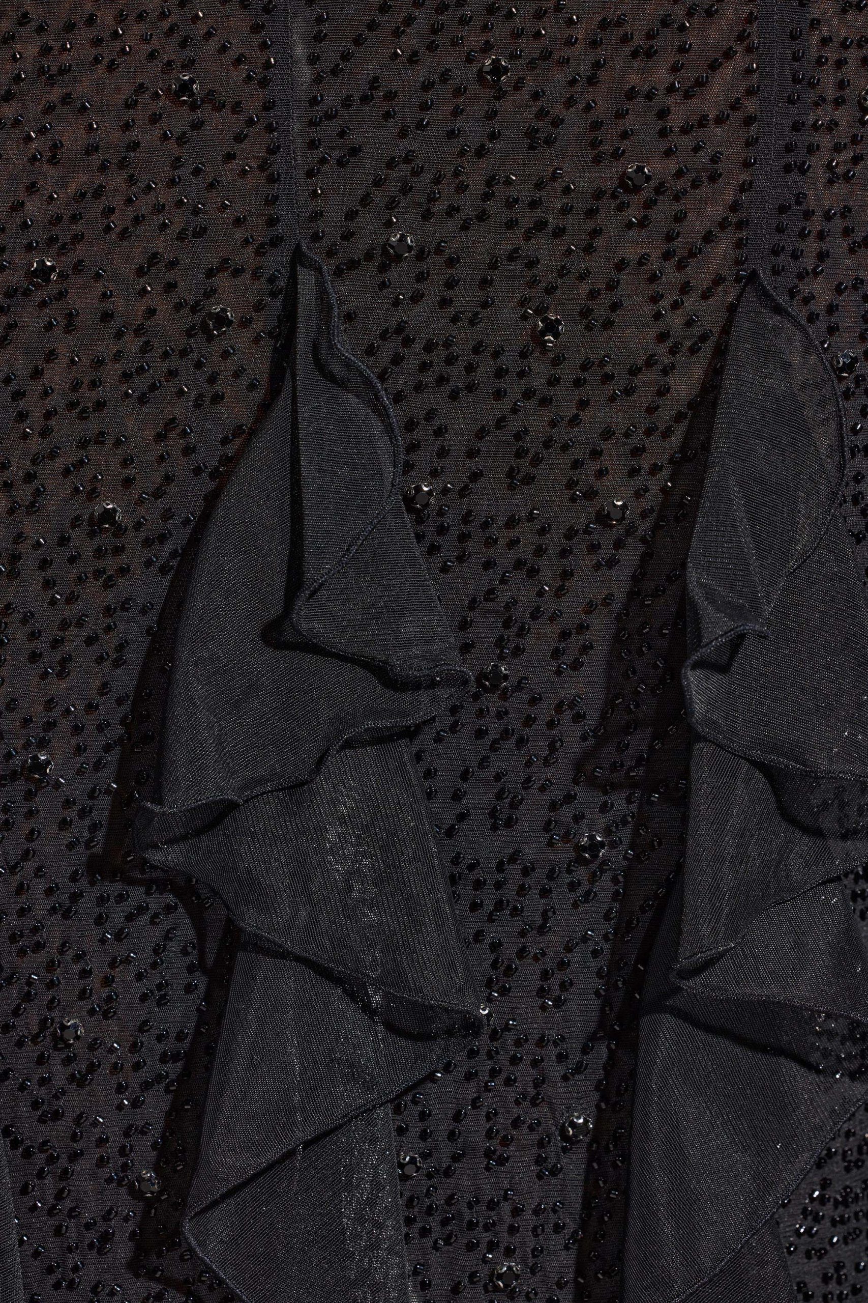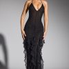 A perfect balance of sultry and feminine, the Anley maxi dress is timeless. Designed in our premium 20D mesh fabric, Anley features all-over bead and crystal embellishment, a plunging halter neckline, and frill detailing from the hips to hemline.
